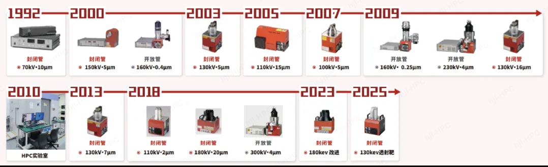 滨松自1992年起,便投身于MFX的研发,30余载春秋,我们不断突破,研发出封闭管和开放管十余种产品,满足客户的多样化需求。2010年,上海X射线实验室的成立,更是为客户提供了便捷高效的服务。在即将到来的2025年,我们还将推出全新的130kev透射靶封闭管,敬请期待!