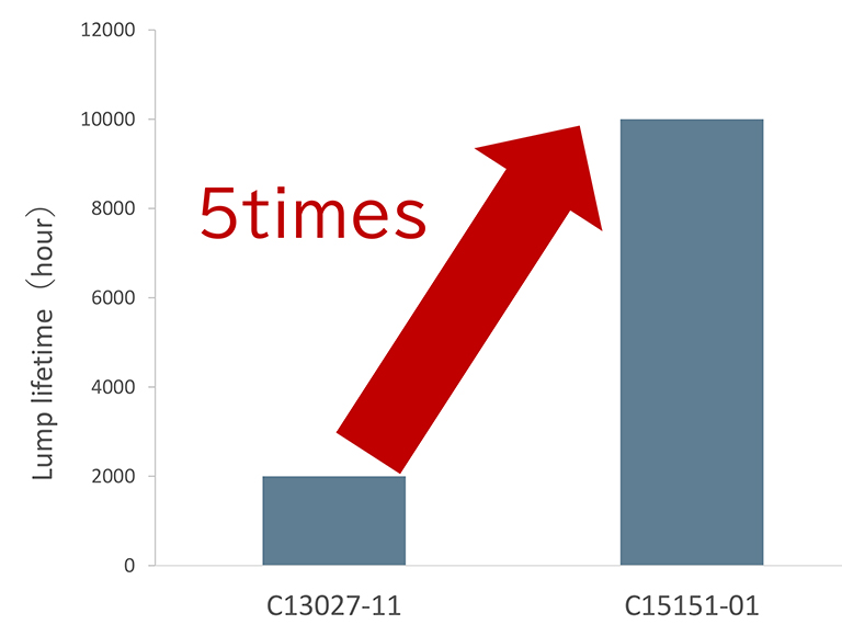 这是一个使用激光驱动光源 (LDLS) 的 Optical NanoGauge 膜厚测量系统。该光源寿命为 10,000 小时,是采用卤素灯的 Optical NanoGauge 膜厚测量系统 /C13027-11 (光源寿命:2,000 小时) 的 5 倍。光源寿命越长,意味着系统维护频率就越低,从而减少了维护所需的电力消耗和处置的光源数量。