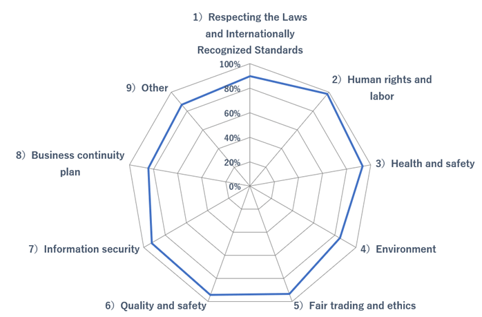 我们正要求主要供应商了解并签署“行为准则”,并提交协议书。截至 2025 年 6 月,已有 223 家主要供应商签约。(签约率:97.4%)