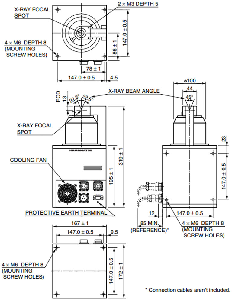 管电压:40 至 130 kV,最大输出:39 W,X 射线焦点尺寸:5 um,串行端口控制:RS-232C