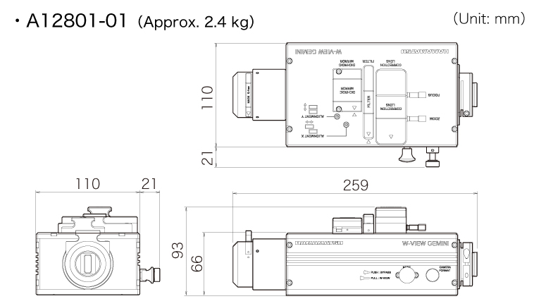 | 视野 *1 | 13 mm × 6.4 mm(W-VIEW 模式) 13 mm × 13 mm(旁路模式) |