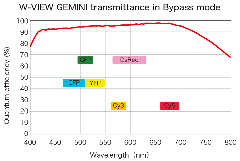 W-VIEW GEMINI可在各种波长范围内提供出色的透射率。我们的专有镜头系统可实现从 400 nm 到 800 nm 的卓越性能。当搭配“成像级”滤波器使用时,系统获得优化,适用于弱光成像。