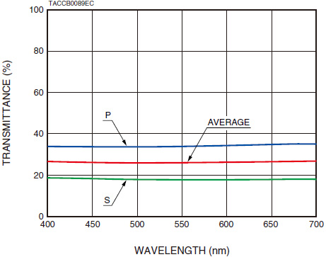 此光学积木使用立方型半振镜。入射光按 1:1 的比例分成反射光束和透射光束。