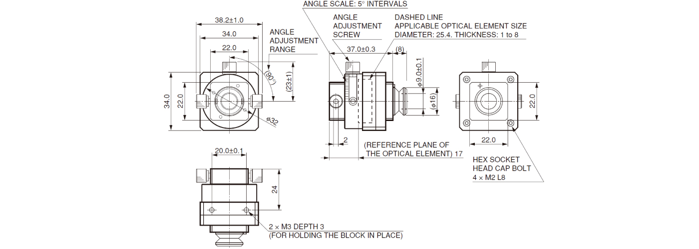 | 型号 | 有效光束尺寸 | 适用的偏振元件尺寸 | 可调范围 | 角度刻度 | 重量 |