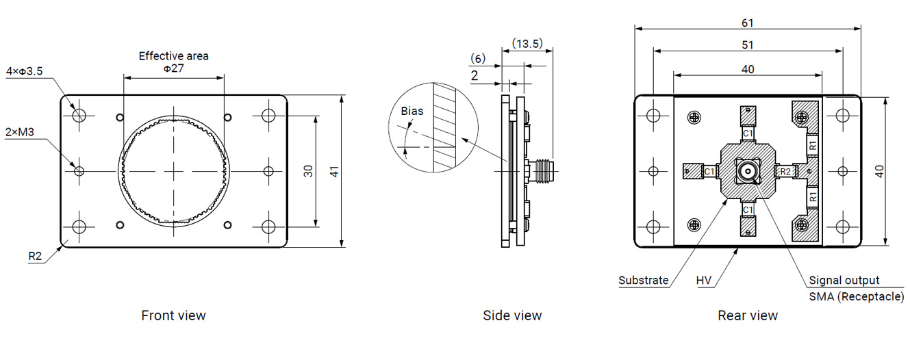 F12395-11 是一款紧凑型微通道板 (MCP) 组件,采用薄型设计,有效直径为 Φ27 mm,适合集成到空间受限的环境中。