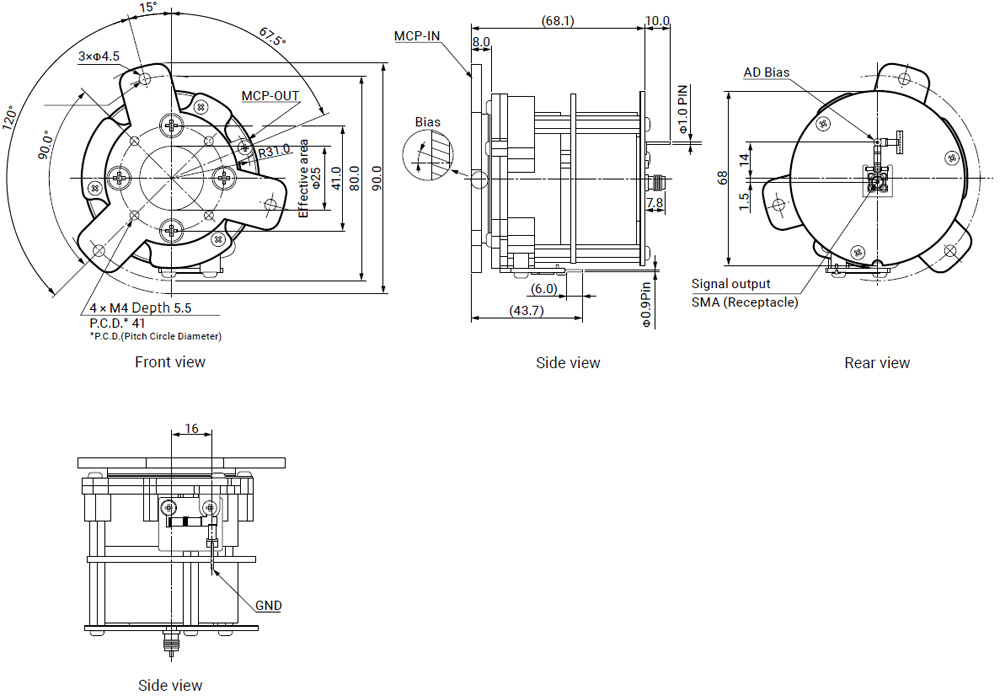 *1:电源电压:1.0 kV/MCP,真空度:1.3 × 10-4 Pa,工作环境温度:+25°C