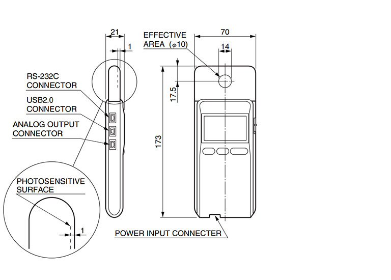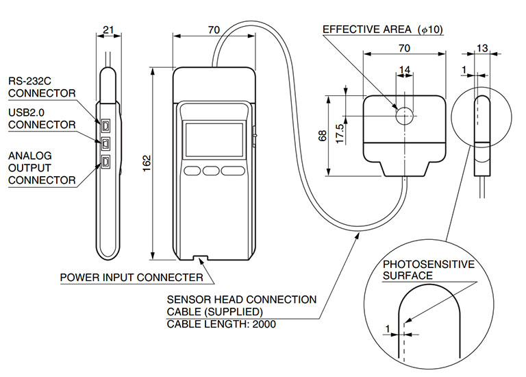 | 测量范围 | 0.001 至 100(测量范围切换:4 级) | mW/cm2 | |